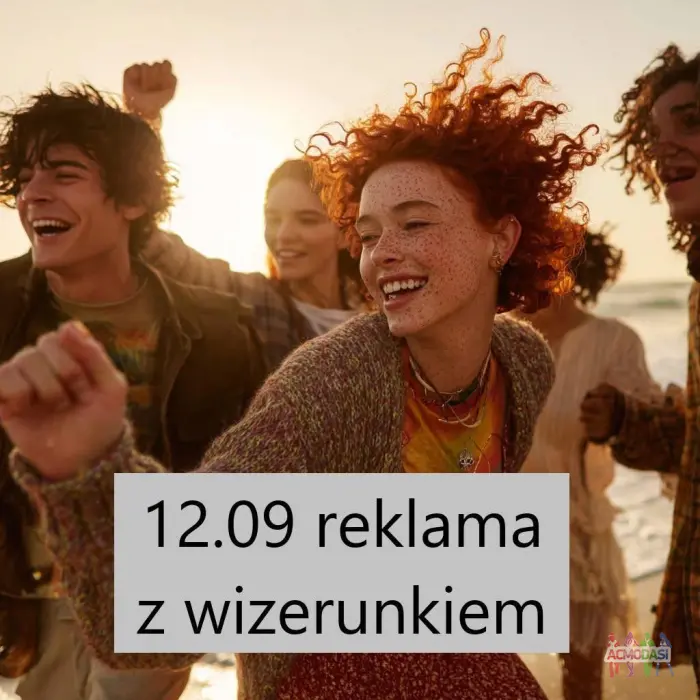 Z wizerunkiem jako osoby tańczące na plaży „reklama”