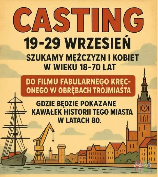 Trójmiasto 🎬🎬🎬🎬🎬19-29 wrzesień szukamy mężczyzn i kobiet w wieku 18-70 lat do filmu fabularnego kręconego w obrębach Trójmiasta. Gdzie będzie pokazane kawałek historii teg...