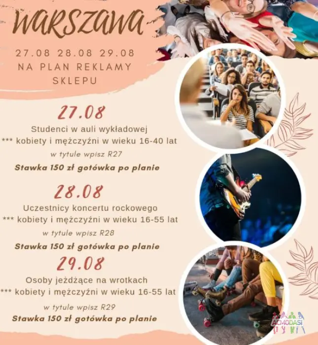 🎬 HALO Warszawa [27.08, 28.08, 29.08] 🎬 Poszukujemy chętnych osób do reklamy sklepu internetowego 🌻🥳 🔍Termin realizacji: [27.08, 28.08, 29.08] Możesz zgłaszać się na je...
